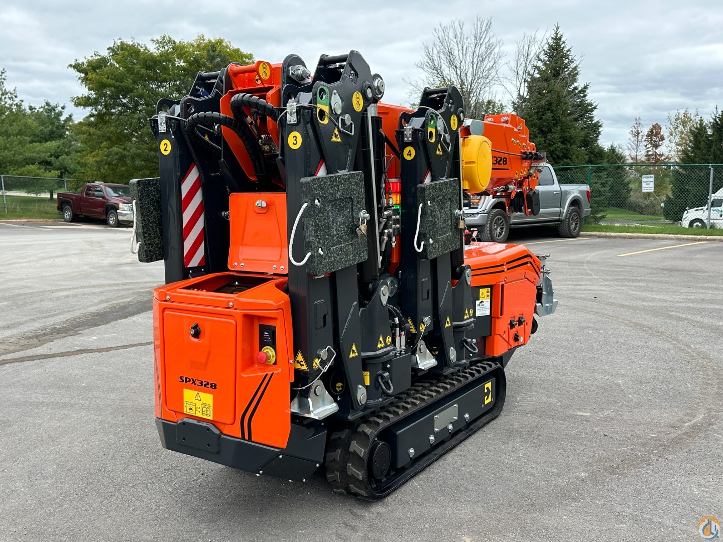 NEW! 2026 Jekko SPX 328 Capacity: 5950 lbs Weight: 5070 lbs L x W x H: 7'8" x 2'5" x 5'3" Max Vertical Reach: 42' Max Horizontal Reach: 34'1" Power Source: Lithium Battery Additional Attachments are Available Upon Request. Unit subject to availability. Call or Email for More Information: 440.349.1999 sales@exactcrane.com www.exactcrane.com