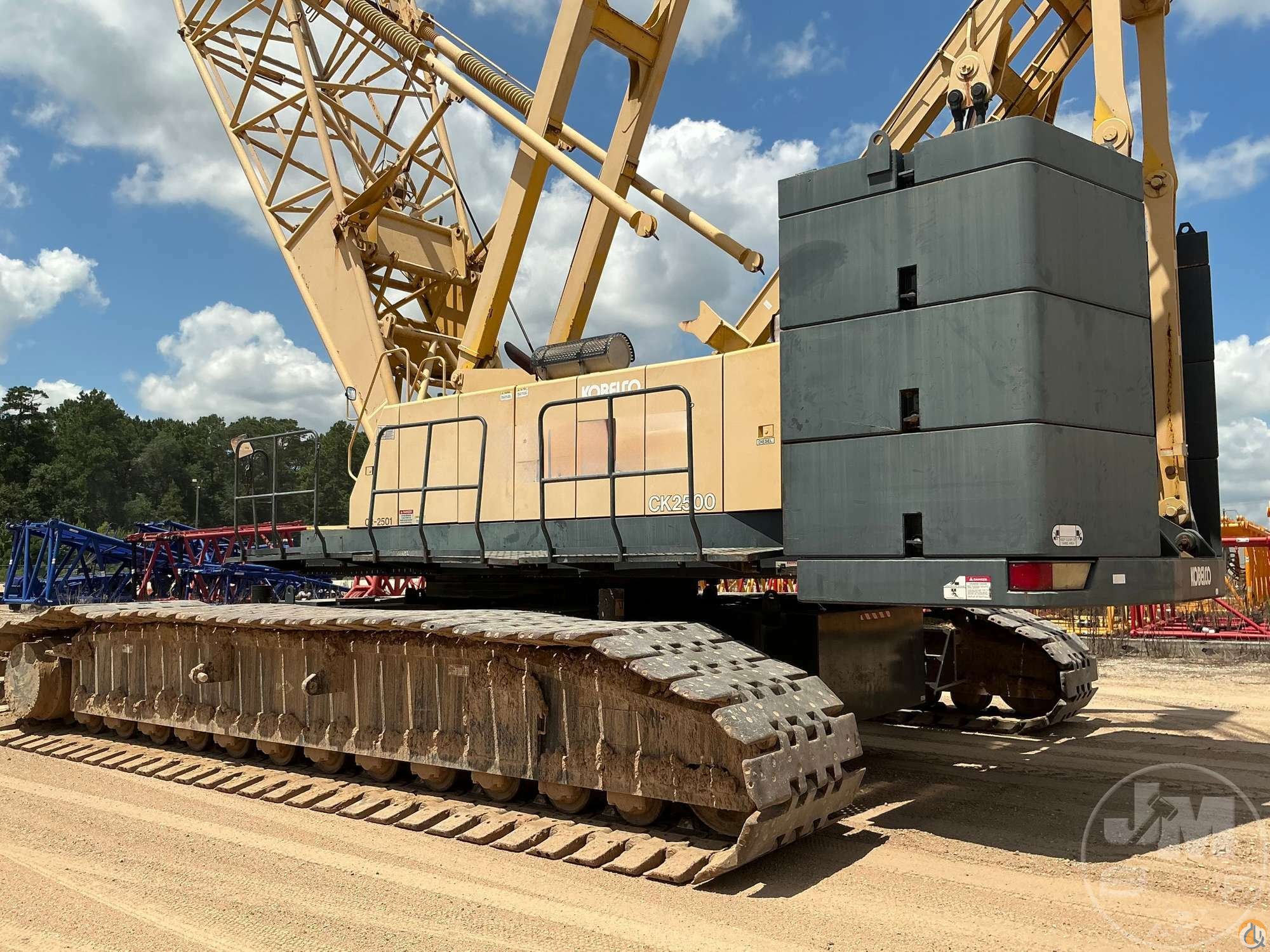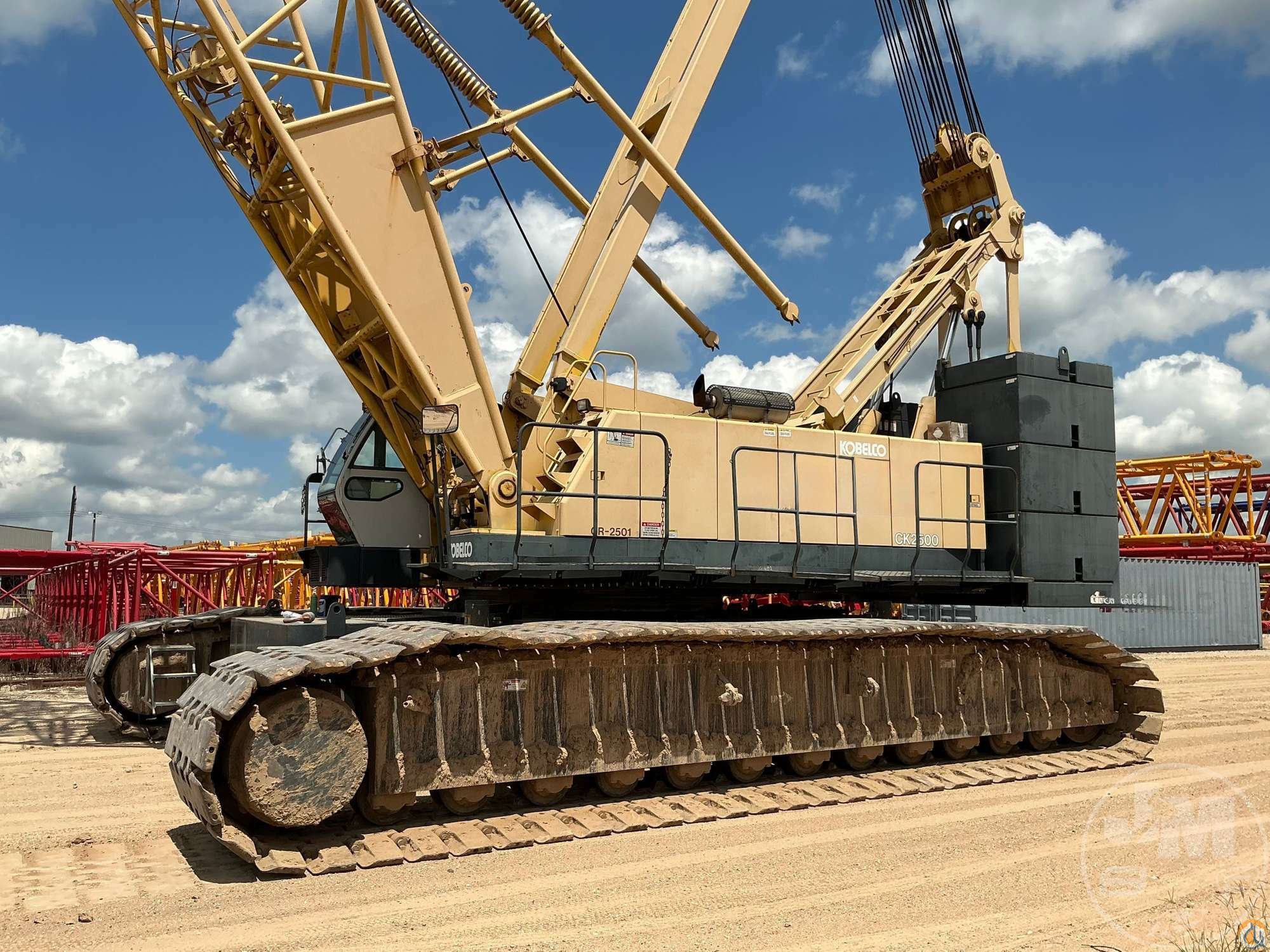 KOBELCO CRAWLER CRANE, 2005 KOBELCO CK2500 CRAWLER CRANE WITH 250 TON CAPACITY EQUIPPED WITH 160' MAIN BOOM, REMOVABLE COUNTERWEIGHT SYSTEM, COMPUTER LMI. HOUR METER READS: 23146 **LOCATED IN HOUSTON, TX*****LOCATED IN SPLENDORA, TX***