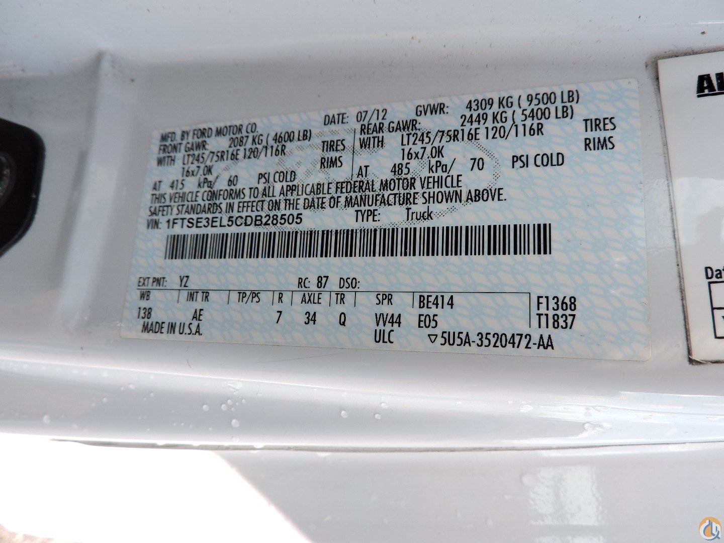 2012 Ford E350 Super Duty Van equipped as follows: