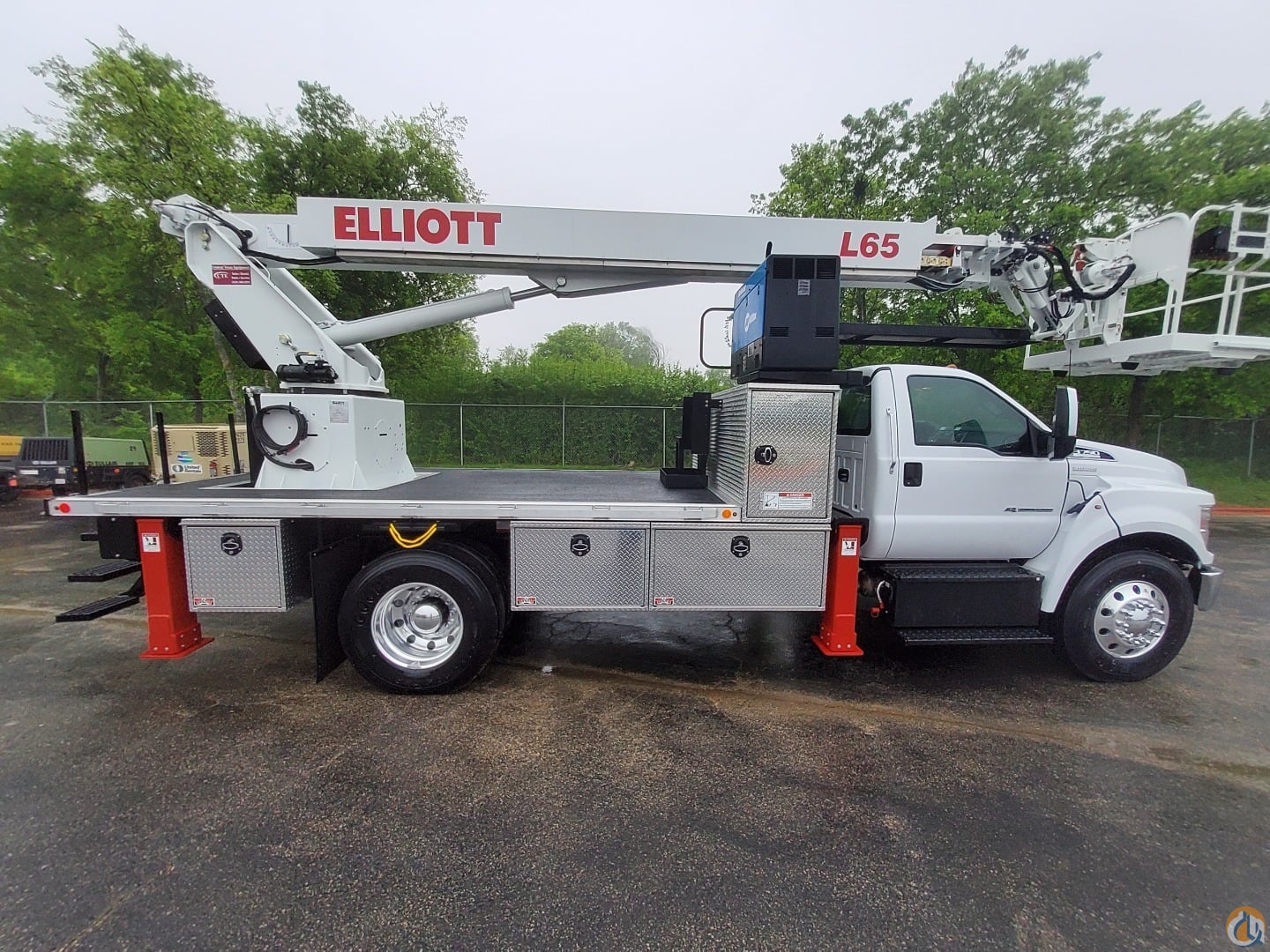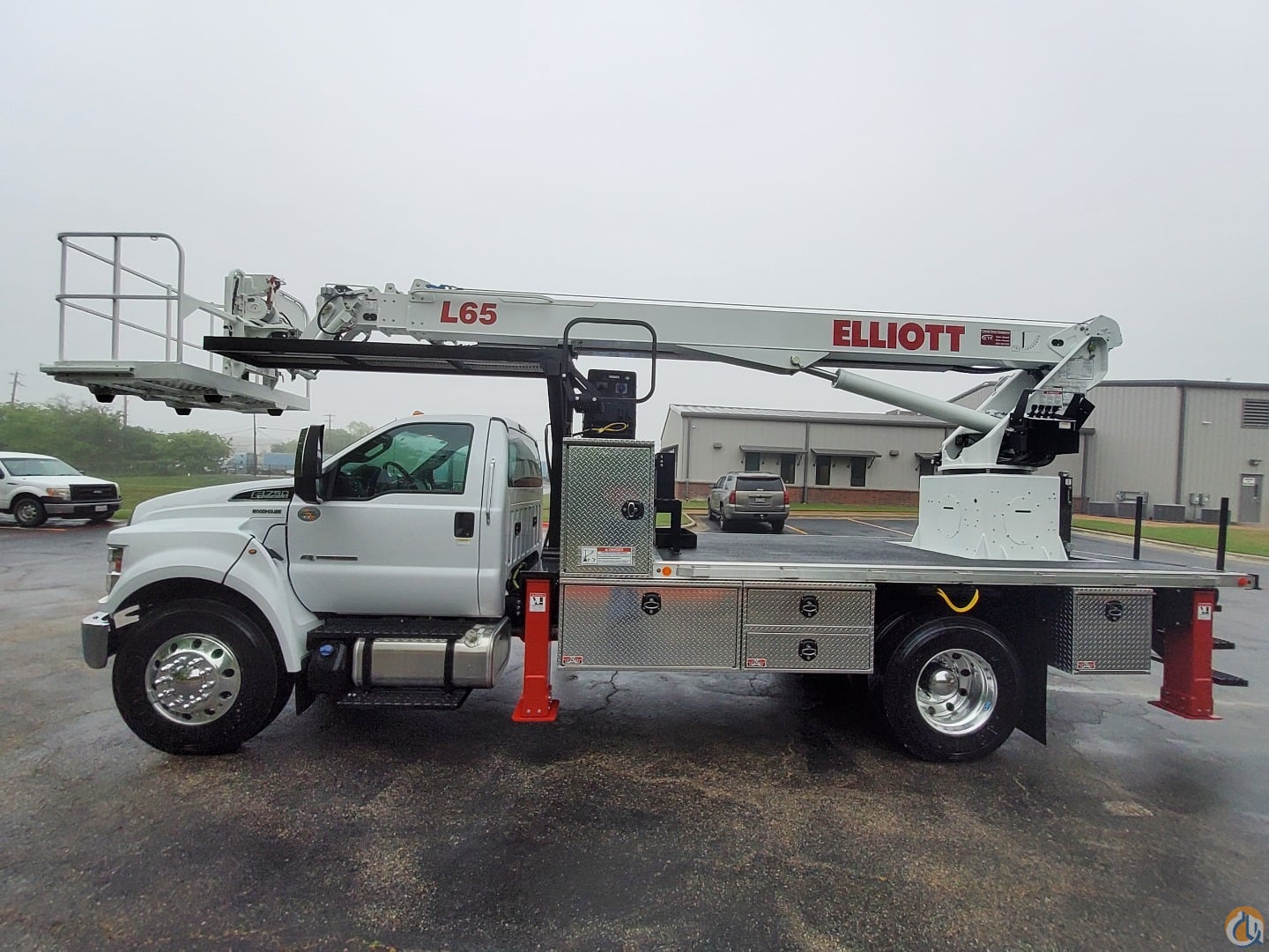 2026 ELLIOTT HI-REACH MODEL L65R MOUNTED ON A 2026 31,000 GVWR (DE-RATED TO 25,999) FORD F750 300HP CHASSIS WITH AUTOMATIC TRANSMISSION, ALUMINUM WHEELS, CHROME FRONT BUMPER/GRILL, POWER WINDOWS/LOCKS/MIRRORS, BLUETOOTH, AND AIR RIDE DRIVER SEAT TO BE EQUIPPED WITH THE FOLLOWING OPTIONAL EQUIPMENT: